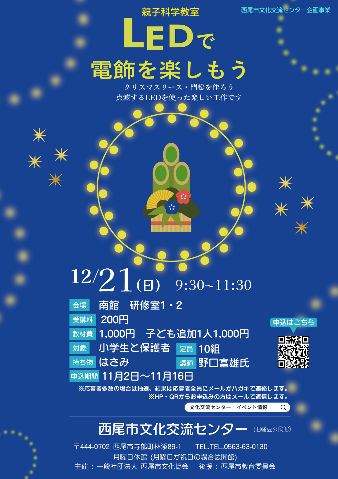 親子科学教室「LEDで電飾を楽しもう」クリスマスリース・門松を作ろう申込延長しました。