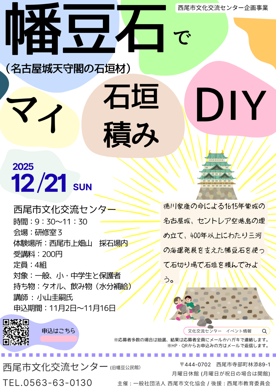 - 西尾市文化交流センター ☎0563-63-0130 ✉ hazu-event@nishiobunka.jp